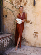 تسلط هذه الفستان المسائي المنشق الضوء على القوام بفضل شقها الأنيق وقصتها السائلة. مصممة للمناسبات الكبرى، تجمع بين الأسلوب الراقي وحرية الحركة. يضمن تصميمها الخالد مظهراً أنيقاً في جميع الظروف.