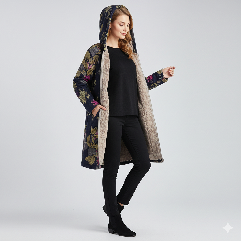 Sanae | Talvitakki Huppu Naisille — Pehmeä Lämpö & Kukallinen Tyyli