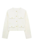 Tämä malli yhdistää modernin ja hienostuneen tyylin lyhyellä, rakenteellisella leikkauksella ja huolellisilla yksityiskohdilla. Kultaiset napit ja koristeelliset taskut tuovat ajattoman tyylin, joka on täydellinen korostamaan rentoa tai juhlavaa ilmettä. Täydellinen välikauteen, tämä takki ilmentää eleganttia ja itsevarmaa tyyliä kaikissa tilanteissa.