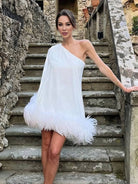שמלות קצרות בצורת חצאית עם כתף אחת מושלמות לאירועים מיוחדים. העיצוב הייחודי שלהן עם שרוולים כמו גלימה מוסיף נופך של sophistication. מושלם לקוקטיילים, ריקודים או מסיבות.