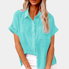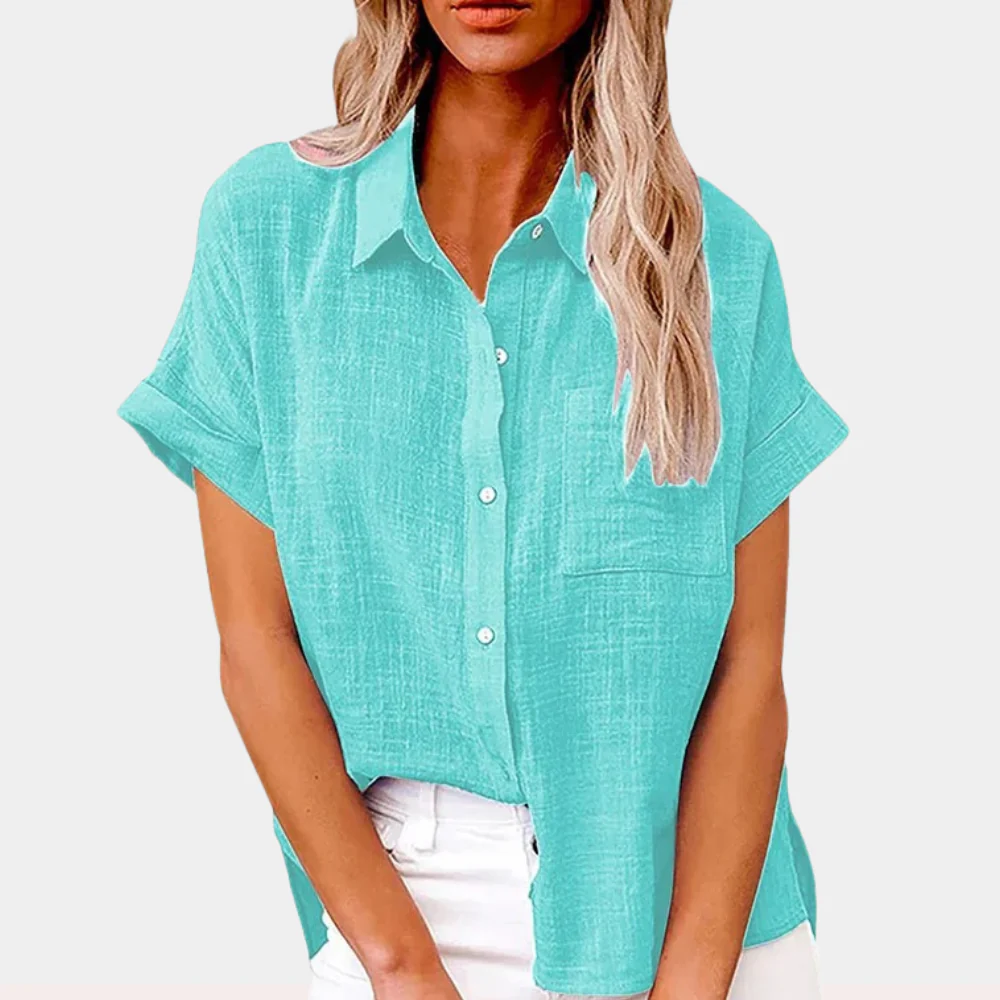 חולצה זו מציעה קאט רחב אידיאלי לימים חמים. הצווארון הקלאסי שלה וסגירת הכפתורים מוסיפים נגיעה אלגנטית. מושלמת למראה נינוח או מקצועי.