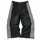 このメンズパンツは、サイドシームに特徴的なストライプを施したレトロデザインを誇ります。ゆったりとしたカットが最適な快適さを提供し、都会的なルックを演出します。明るい青または黒で利用可能で、さまざまなシーンに適応します。