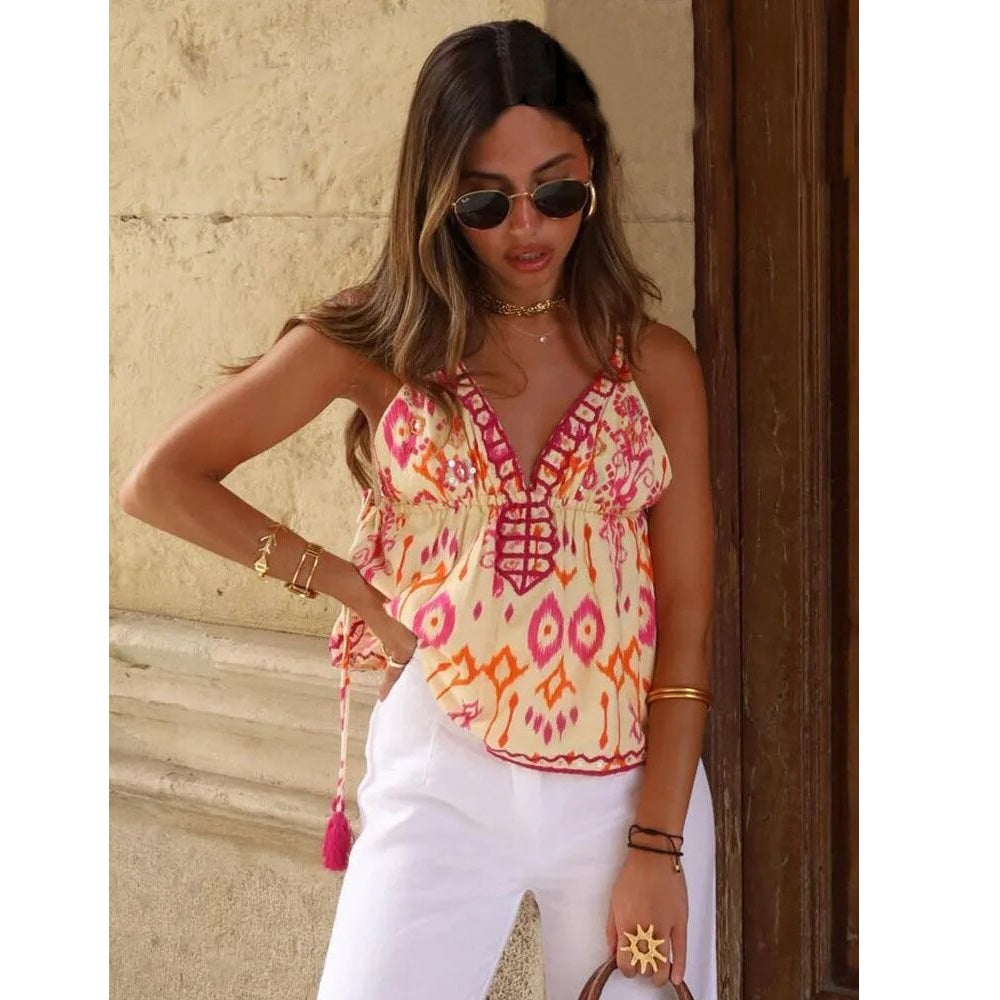 ルナ | ノースリーブシックブラウス – カジュアルなエレガンスと太陽の色