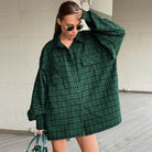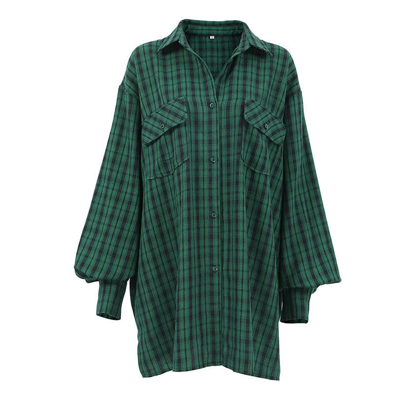 このオーバーサイズのシャツは、大胆なチェック柄と落ちた肩を特徴とし、現代的なルックを提供します。ボリュームのある袖とカフスが女性らしさを加えています。心地よい素材のブレンドで作られており、すべての季節に最適です。